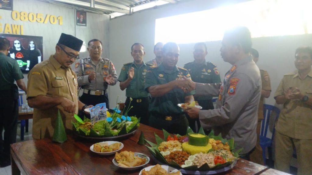 Acara dilanjutkan dengan pemotongan tumpeng sebagai simbol rasa syukur dan kebersamaan, disertai doa bersama untuk kemajuan bangsa dan kesejahteraan masyarakat. Suasana hangat dan penuh keakraban tampak di antara para tamu yang hadir, menandai kuatnya solidaritas dan sinergi antar unsur di Kecamatan Ngawi.