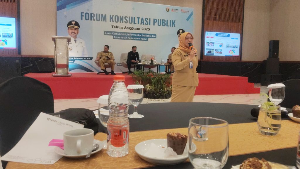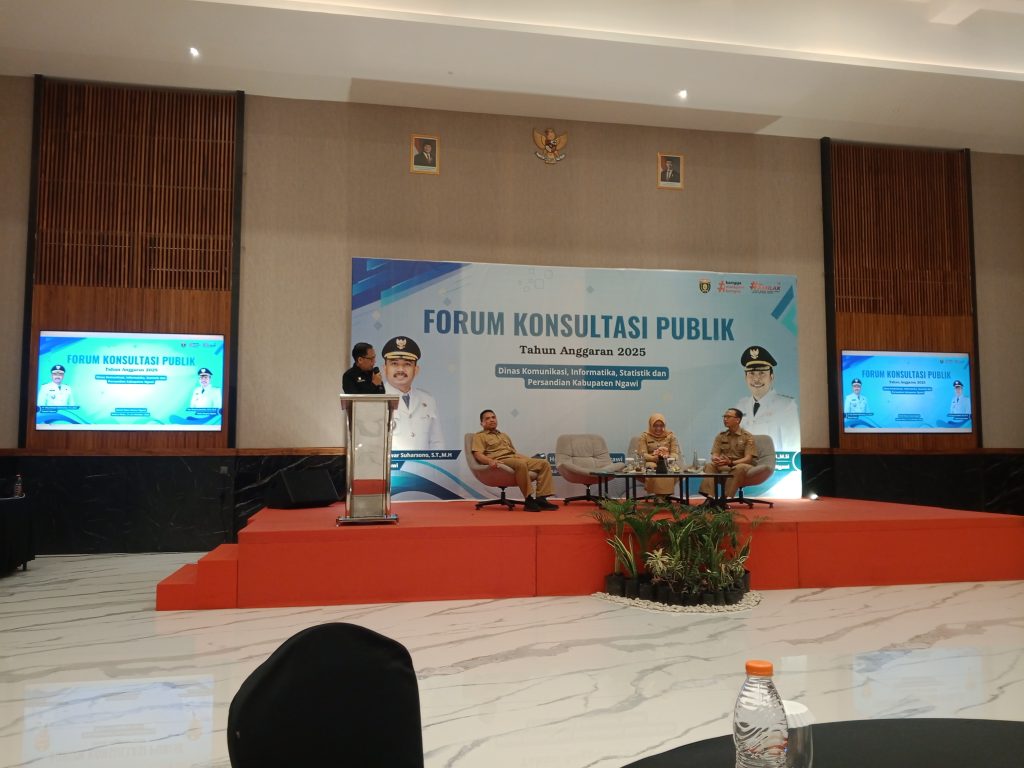 Ngawi, 22/10/2025 – Dalam upaya memperkuat tata kelola informasi publik dan mendorong transparansi digital di lingkungan pemerintahan daerah, Dinas Komunikasi dan Informatika Statistik dan Persandian Kabupaten Ngawi menggelar kegiatan Forum Konsultasi Publik (FKP) pada Selasa hingga Rabu, 21–22 Oktober 2025, bertempat di Nata Azana Hotel, Jl. Raya Ngawi–Solo, Grudo, Kecamatan Ngawi.